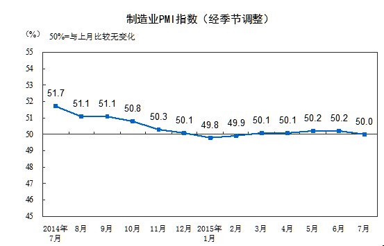 統(tǒng)計(jì)局:7月中國(guó)制造業(yè)PMI為50.0% 位于臨界點(diǎn)