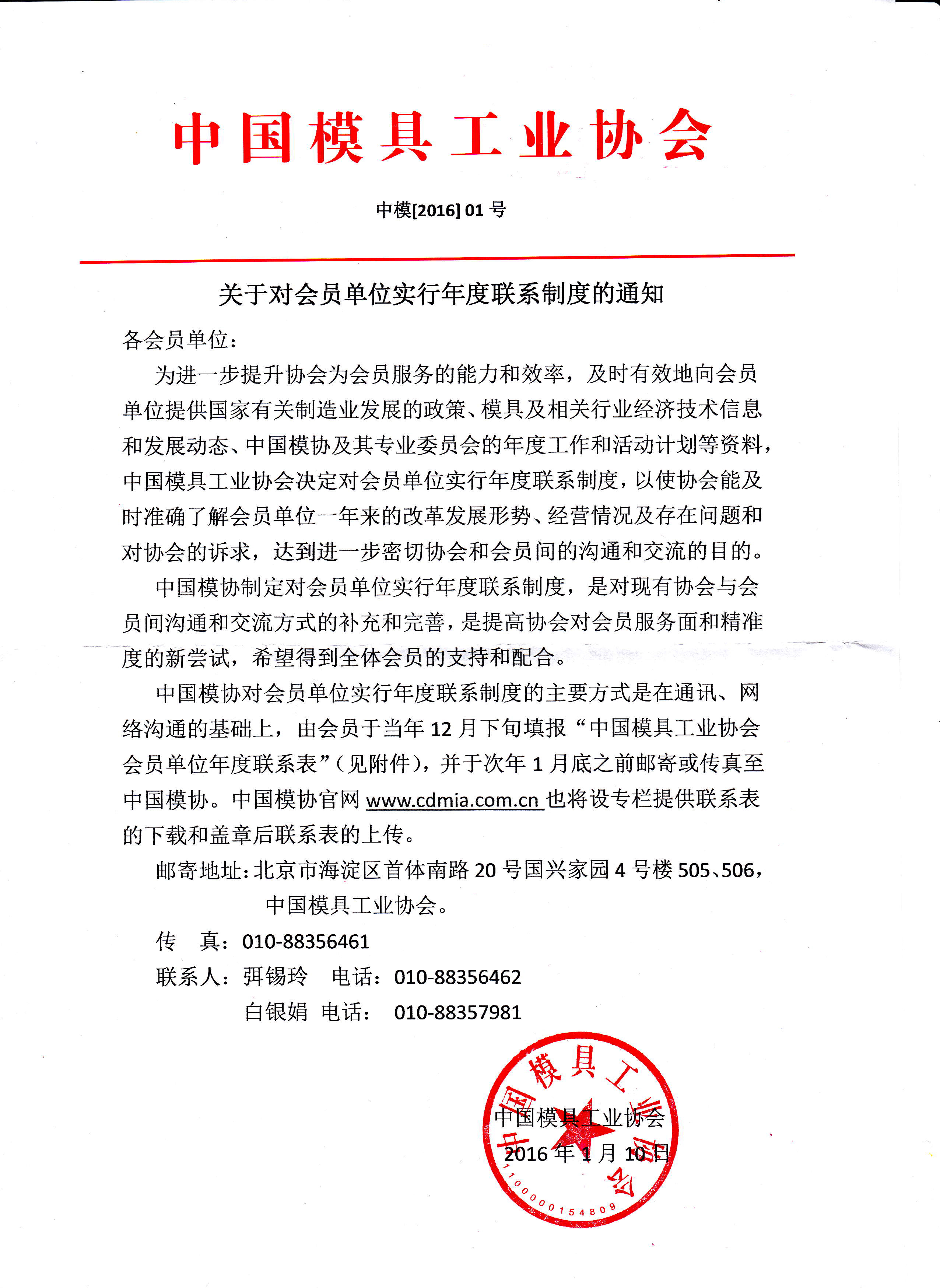 關(guān)于對會員單位實(shí)行年度聯(lián)系制度的通知