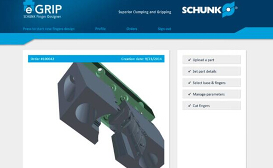 文件以及相關的數據,如物品的重量,夾具的底座,安裝方向,位置和部分夾鉗,應用程序會自動生成優化的夾指設計,并提供價格和交貨信息,即時在線訂購夾鉗。這些夾鉗通過通過