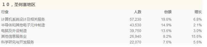 在工作數目上,華盛頓、加州等幾個都會區域增加比較明顯。華盛頓工作數目的增長是因為聯邦政府所在地,政治影響經濟的效應比較顯著,這種效應還會長期下去。加州是因為幾個大型的高科技公司在這里發展起來,這里的創業氛圍特別濃。