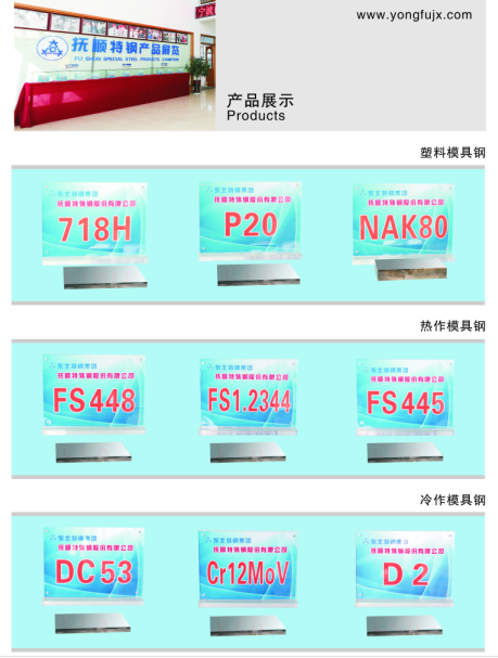 撫順特鋼以生產經營高檔次、高附加值特殊鋼為主要業務,是國內特殊鋼行業的龍頭企業。我司是撫順特殊鋼股份有限公司專營代理商,主要經營撫順特鋼的塑料模具鋼(718H、P20、NAK80) 、熱作模具鋼(FS448、FS413、FS445) 、冷作模具鋼(DC53、Cr12MoV、D2)的批發兼零售;同時,我司擁有一支技術實力雄厚的隊伍為客戶提供優質的模具熱處理服務,并獲得撫順特鋼認證。