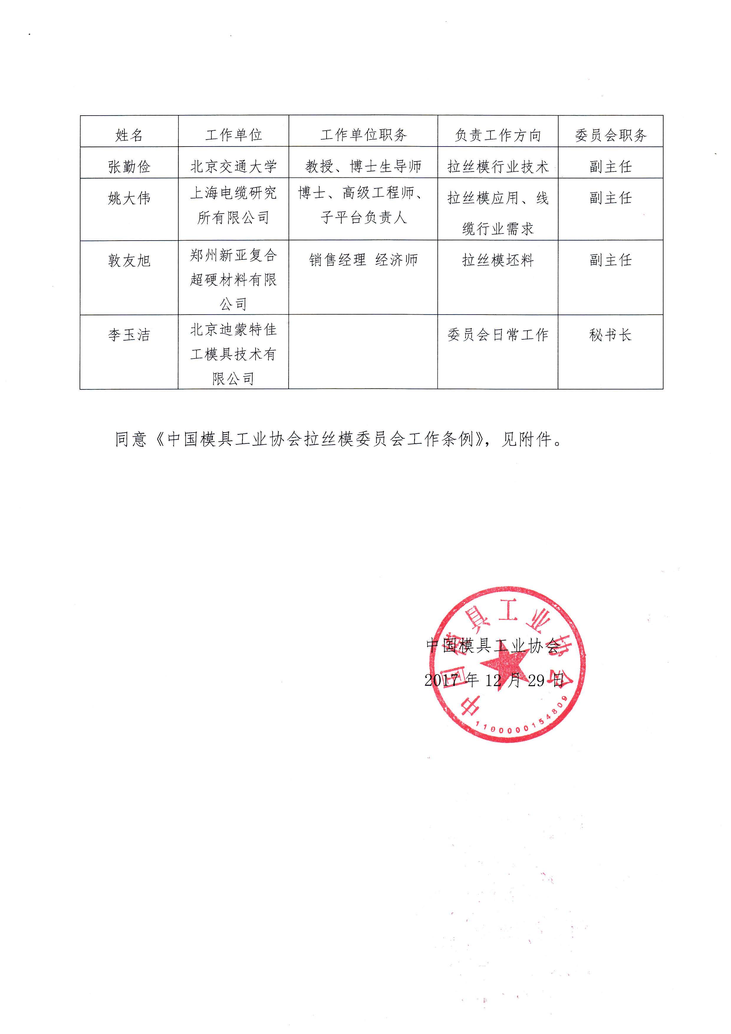 中國模具工業協會第八屆理事會拉絲模具委員會建制及工作條例的批復