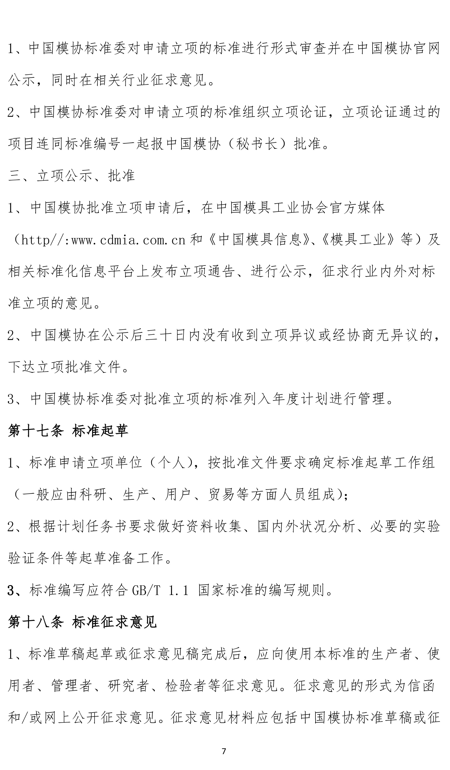 中國模具工業(yè)協(xié)會團體標準管理辦法(試行)