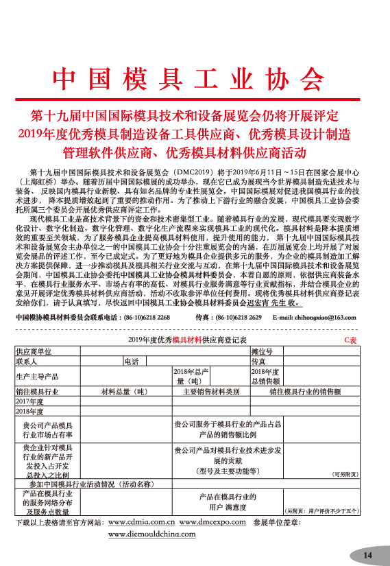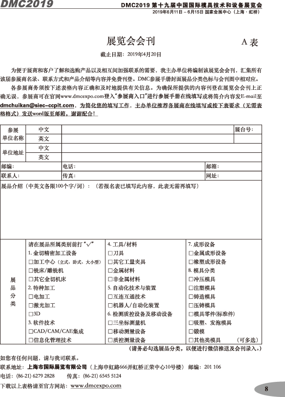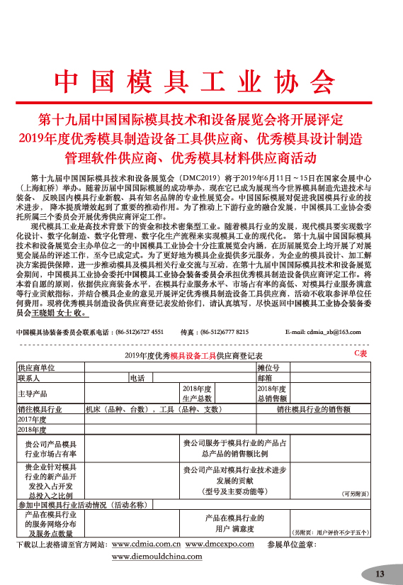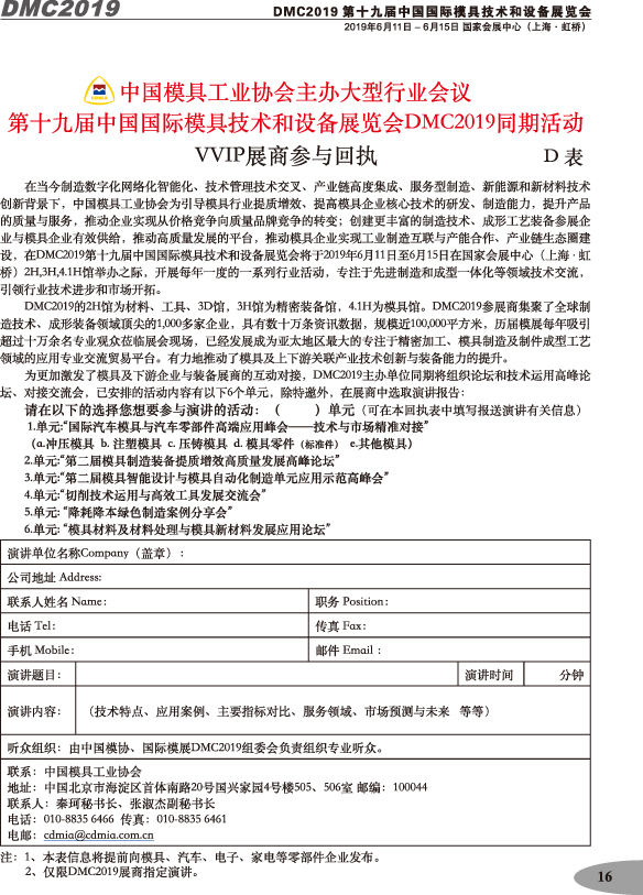 第十九屆中國國際模具技術(shù)和設(shè)備展覽會參展手冊