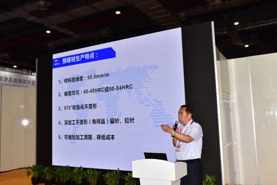 大連東非特鋼制品有限公司總經理寧甲明作了“工模具鋼預硬材的研發和應用”主題報告,他結合大連東非特鋼的生產現狀介紹了工模具鋼預硬材產品的研發和應用。