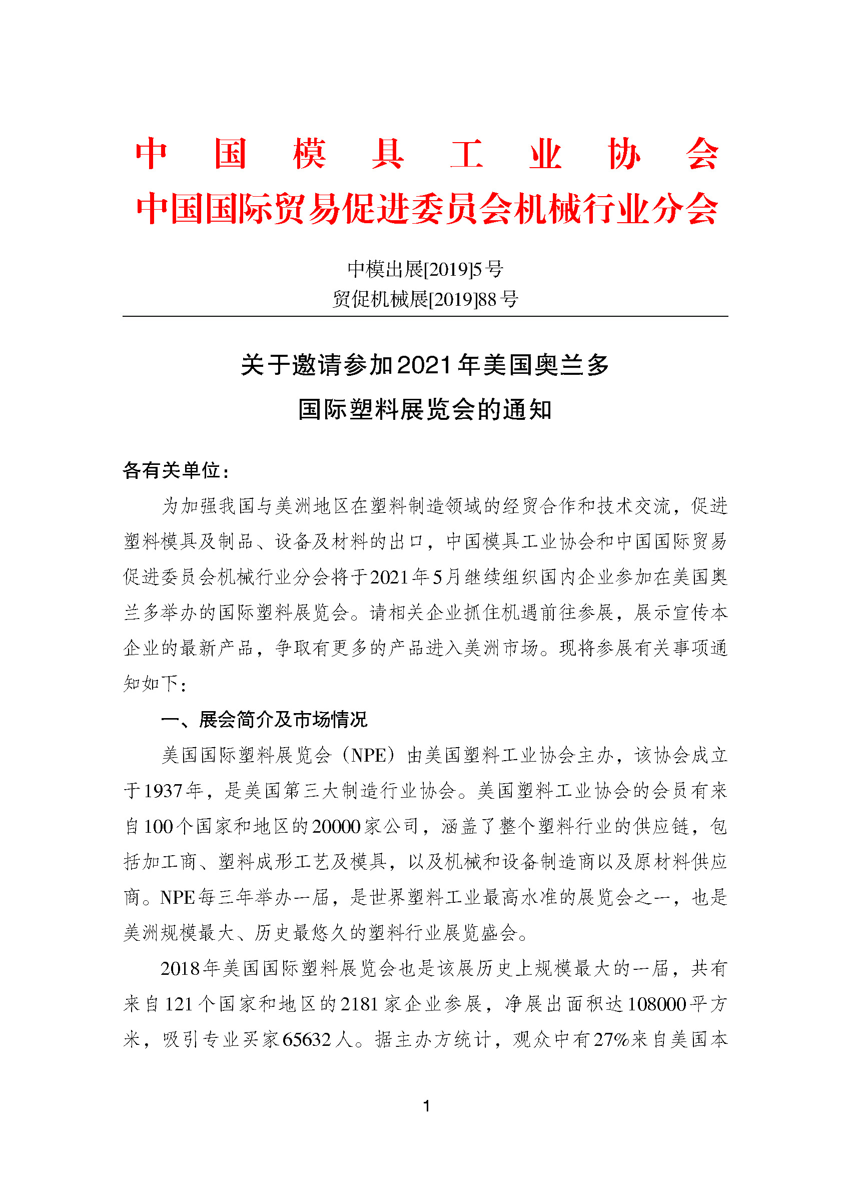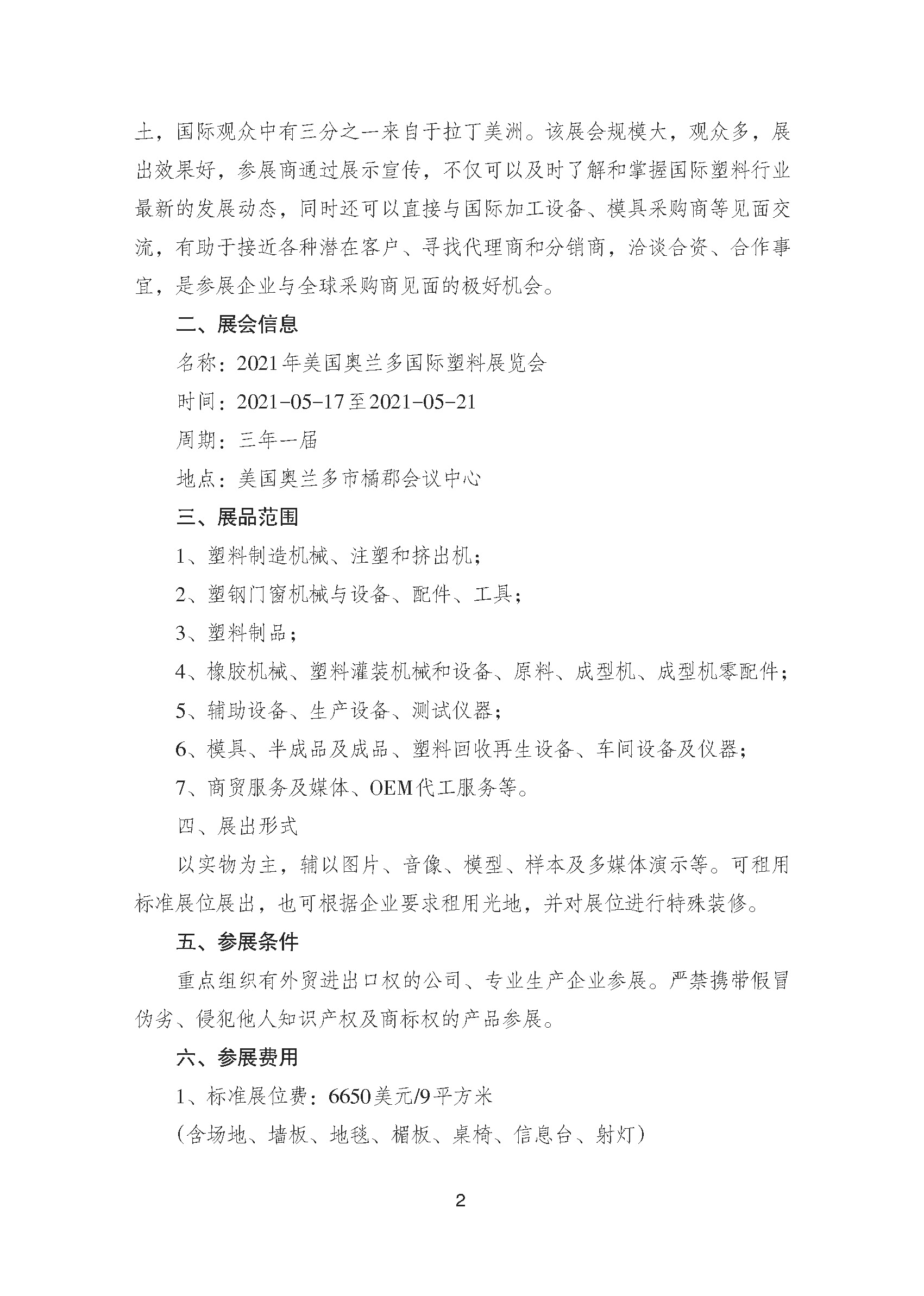 關于邀請參加2021年美國奧蘭多國際塑料展覽會的通知