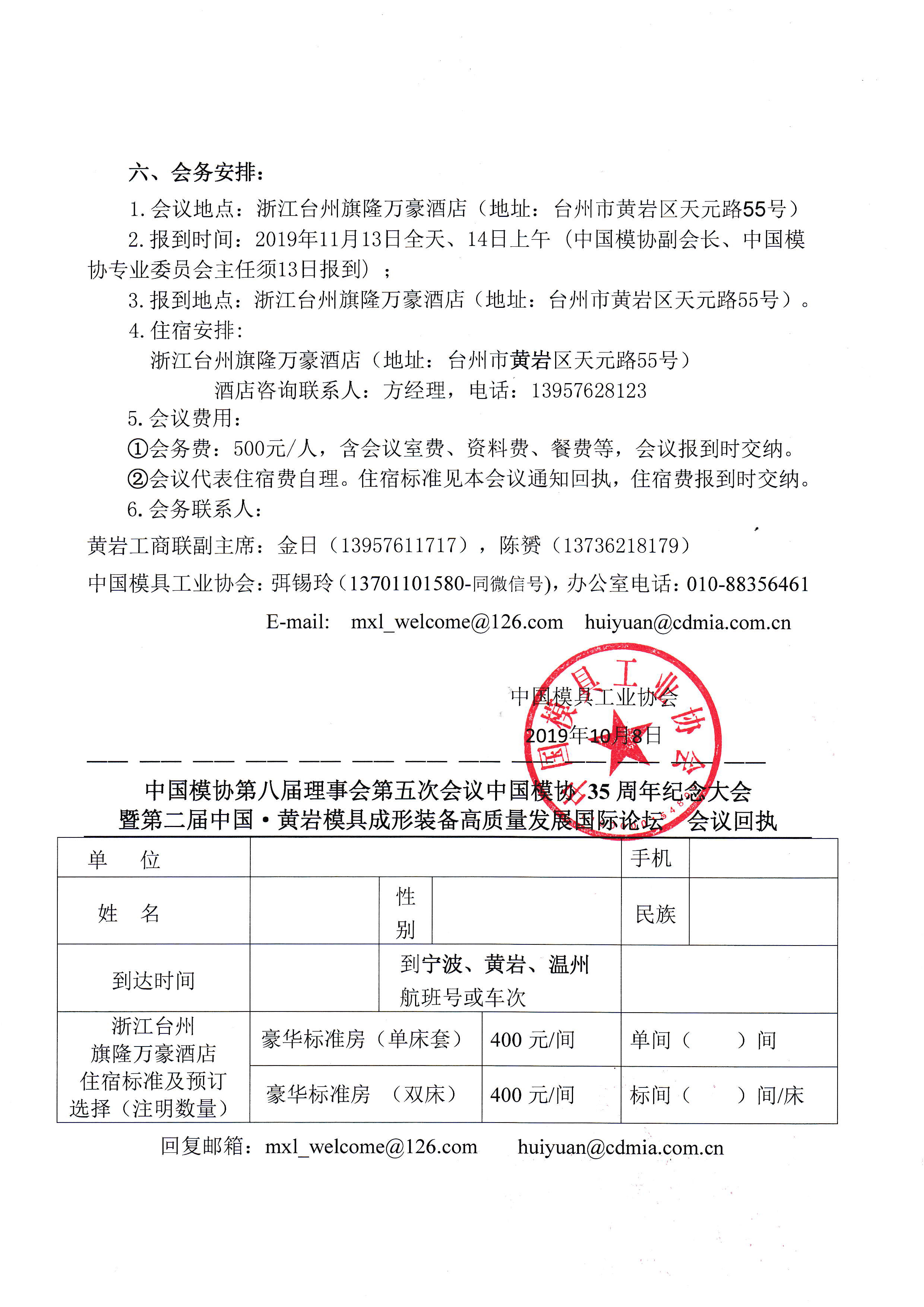 中國模具工業(yè)協(xié)會(huì)八屆理事會(huì)第五次會(huì)議 中國模具工業(yè)協(xié)會(huì)35周年紀(jì)念大會(huì)暨第二屆中國黃巖模具裝備高質(zhì)量發(fā)展國際論壇系列會(huì)議通知