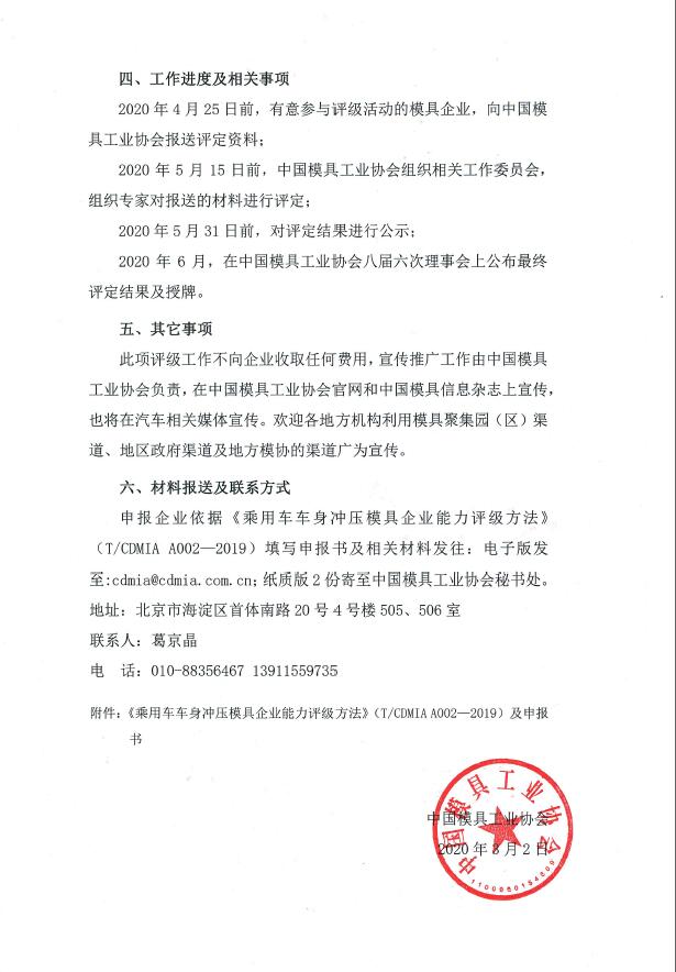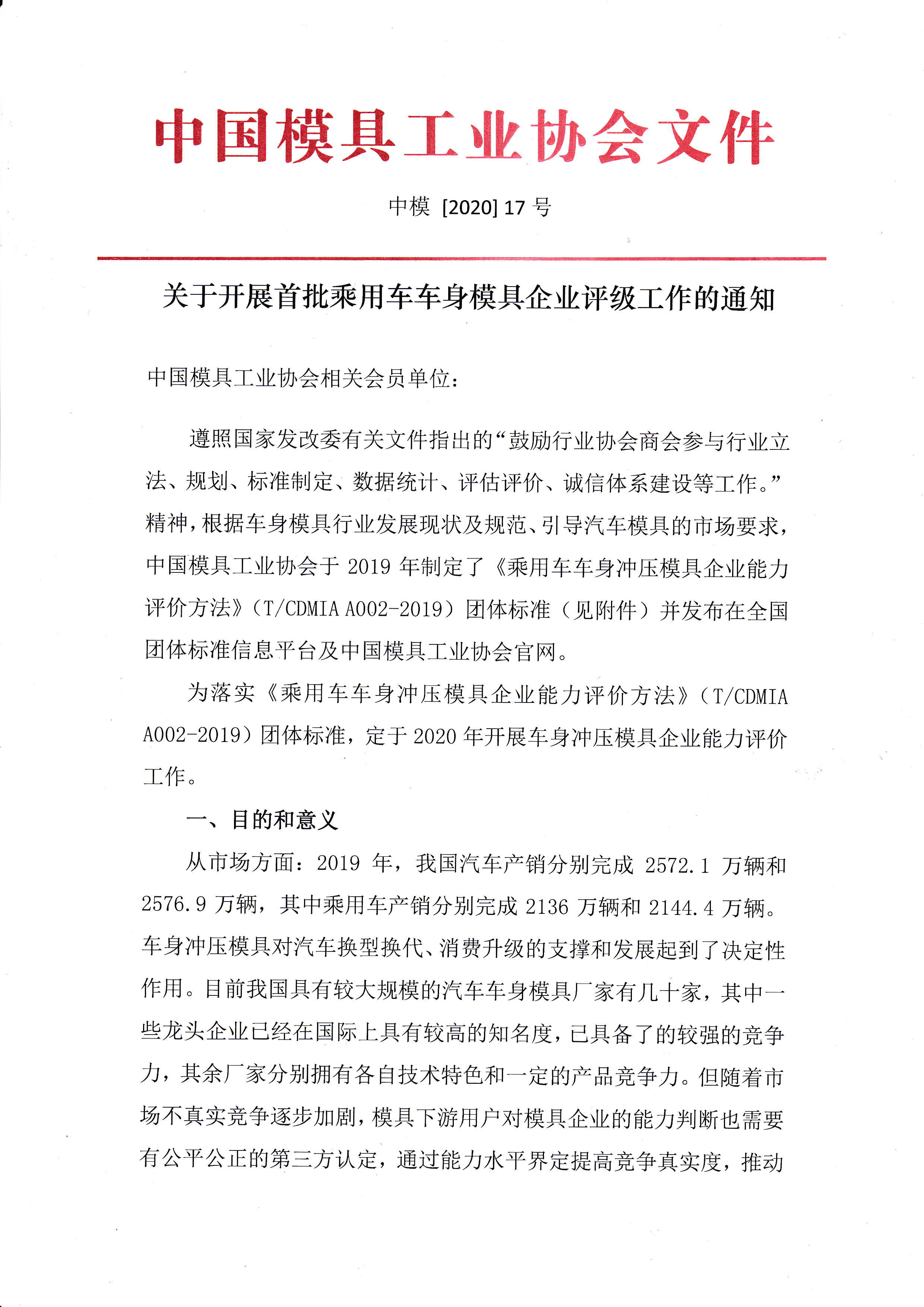 關(guān)于開(kāi)展首批乘用車車身模具企業(yè)評(píng)級(jí)工作的通知