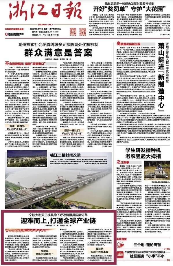 “機不可失,我們接!”寧波大榭天正模具有限公司董事長張小巖迅速響應。他帶領團隊邊組織設計,邊優(yōu)化制造工藝,靠多年磨礪的一身“好武藝”,搶進度、摳細節(jié),終于在4月14日如約完成這批美國訂單,將3臺呼吸機模具一并交貨給美方。