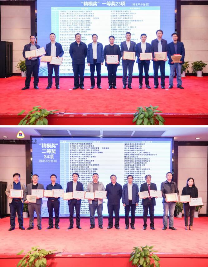 中國模協精模獎評定專家組組長、同濟大學林建平教授對2020“精模獎”技術水平綜述與獲獎模具創新進行了精彩點評。常會長、黃會長為“精模獎”團隊及“優秀供應商”單位頒發獎牌證書。