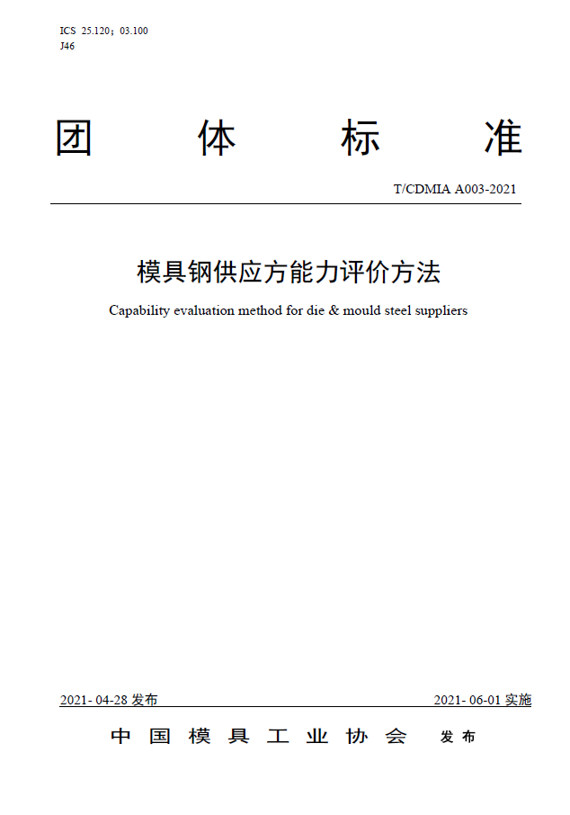 中國模協標準A003-模具鋼供應方能力評價方法-2021