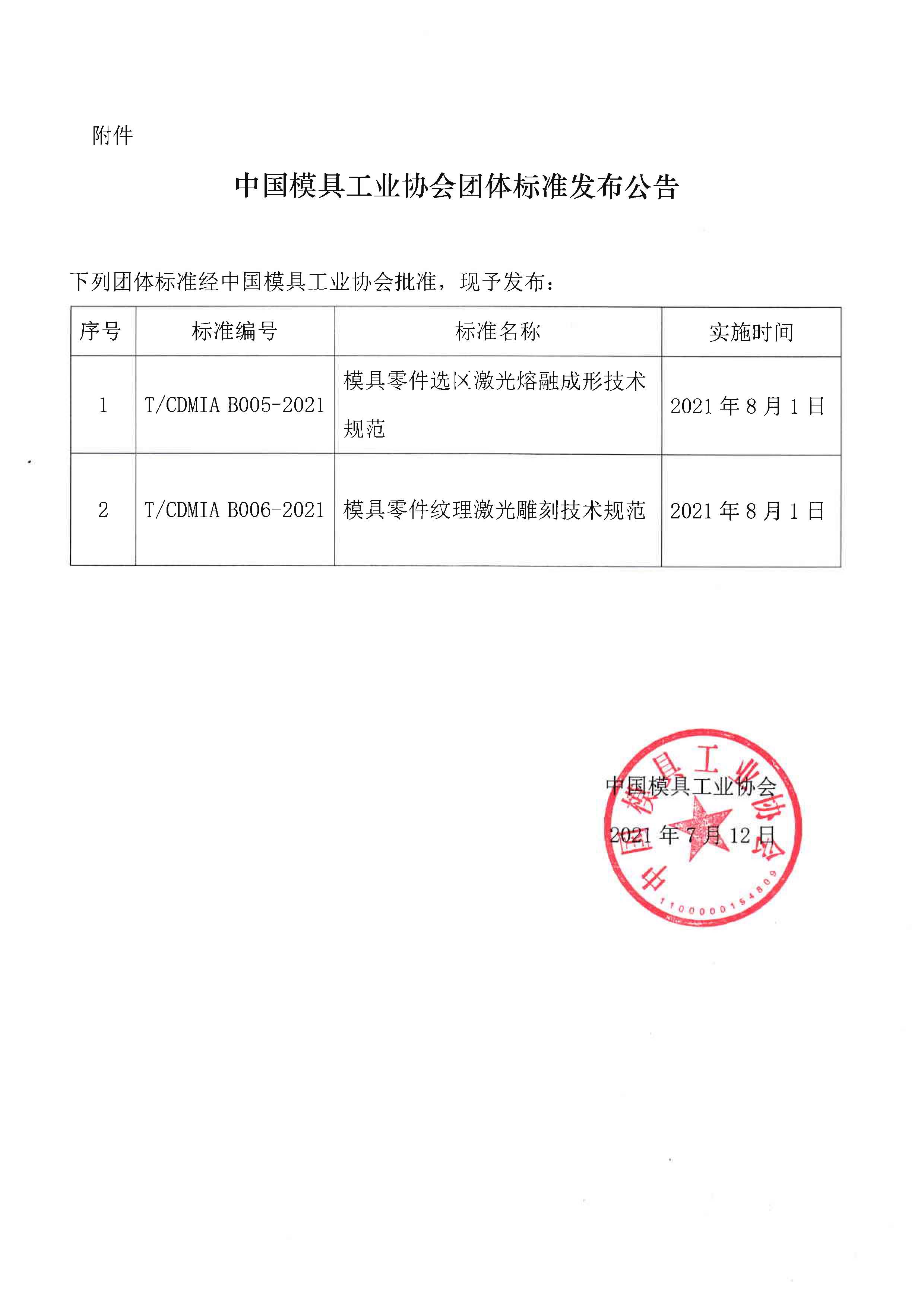 關于發布《模具零件選區激光熔融成形技術規范》等兩項團體標準公告的通知