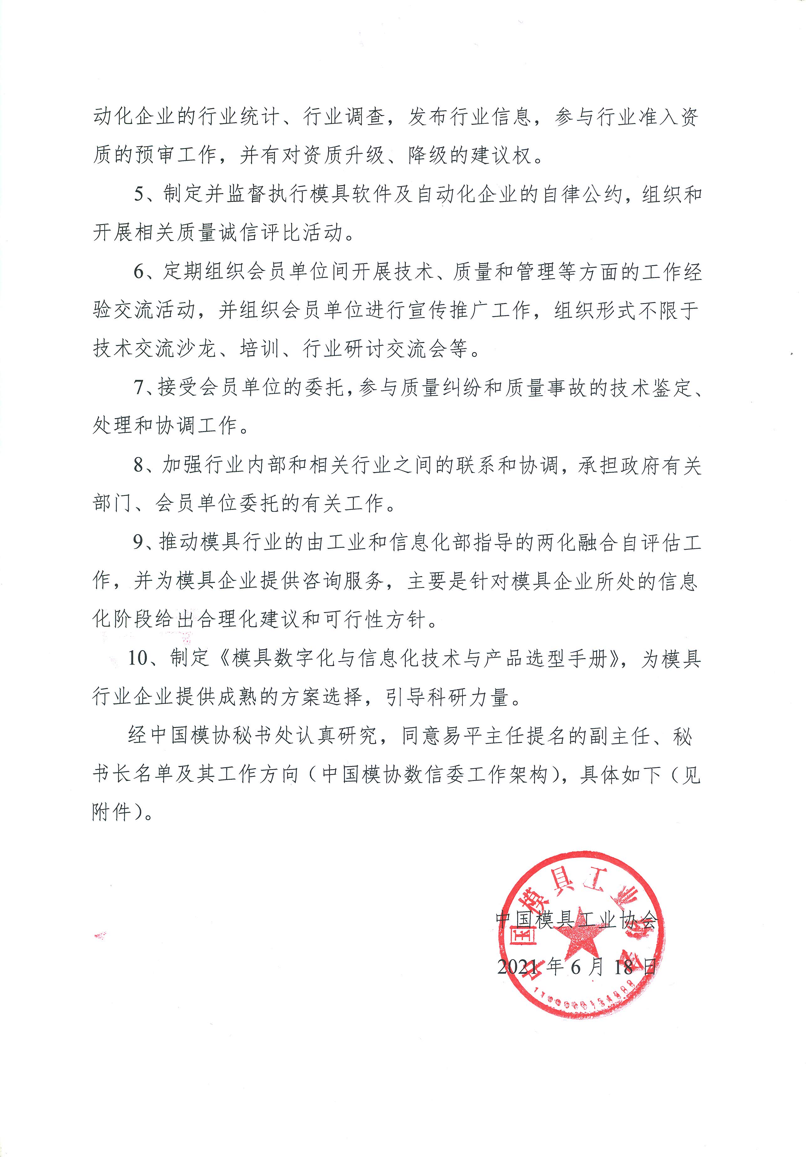 中國模協(xié)第九屆理事會(huì)數(shù)字化信息化委員會(huì)副主任、秘書長組成及工作架構(gòu)的批復(fù)