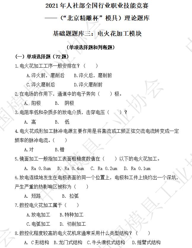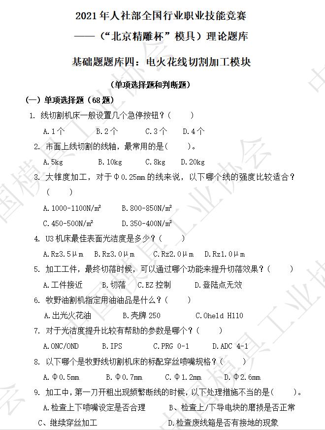 基礎題題庫:電火花加工模塊、電火花線切割加工模塊
