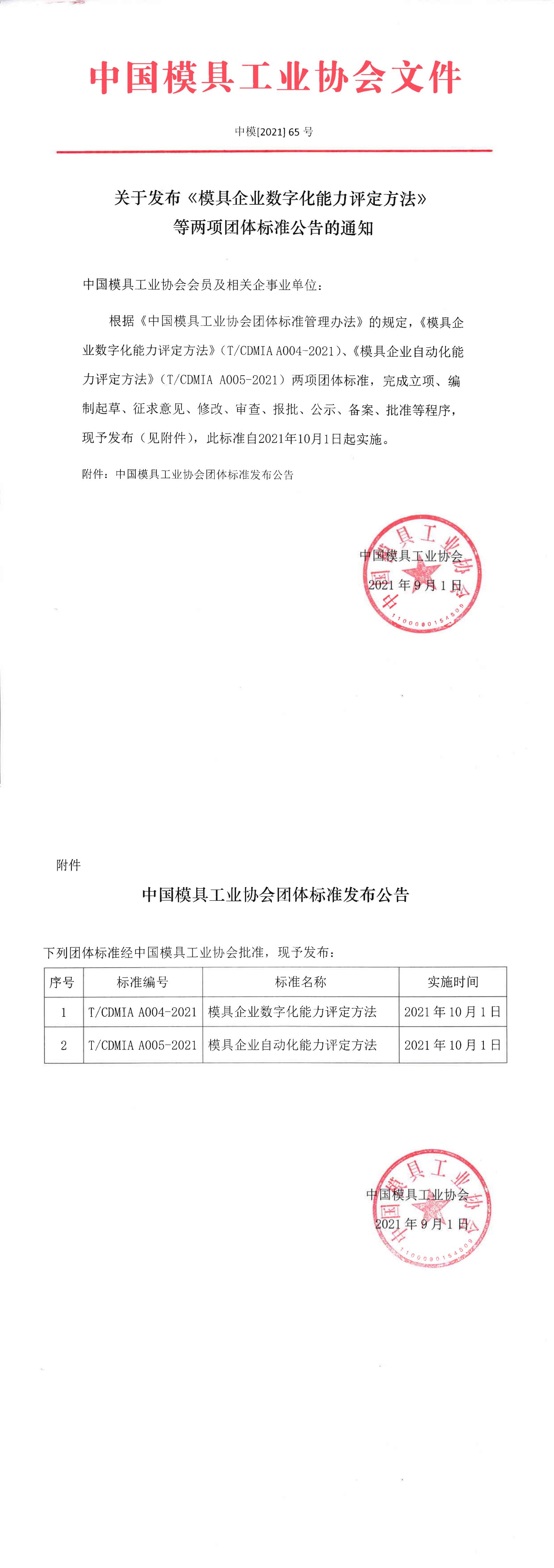 關于發布《模具企業數字化能力評定方法》等兩項團體標準公告的通知