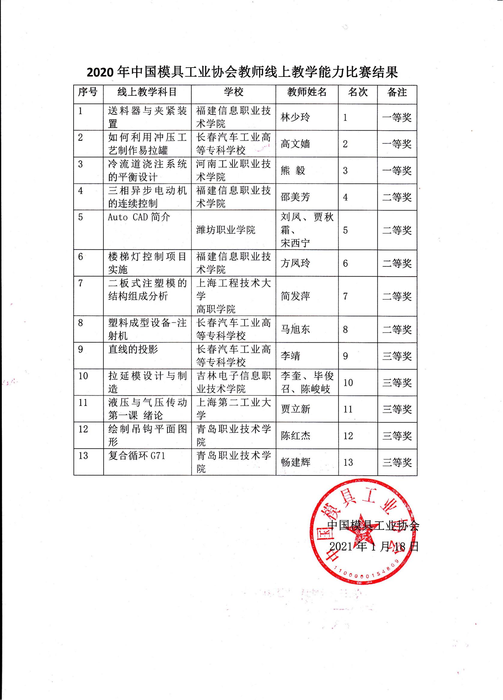 2020年中國模具工業(yè)協(xié)會(huì)教師線上教學(xué)能力比賽結(jié)果公告