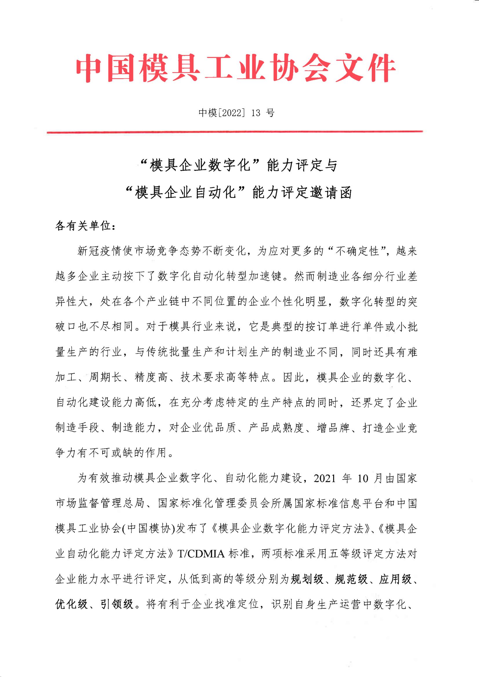 “模具企業數字化”能力評定與“模具企業自動化”能力評定邀請函