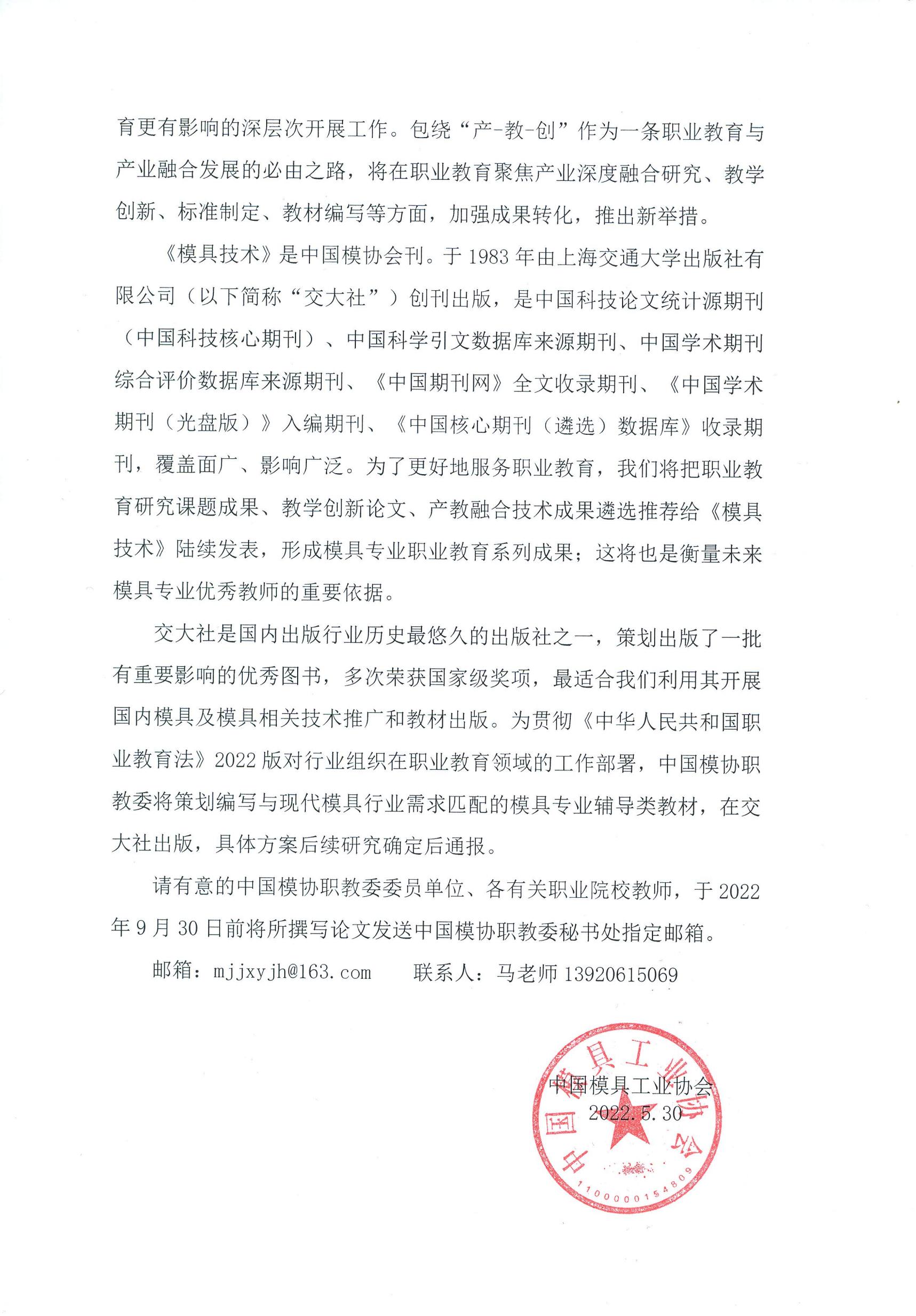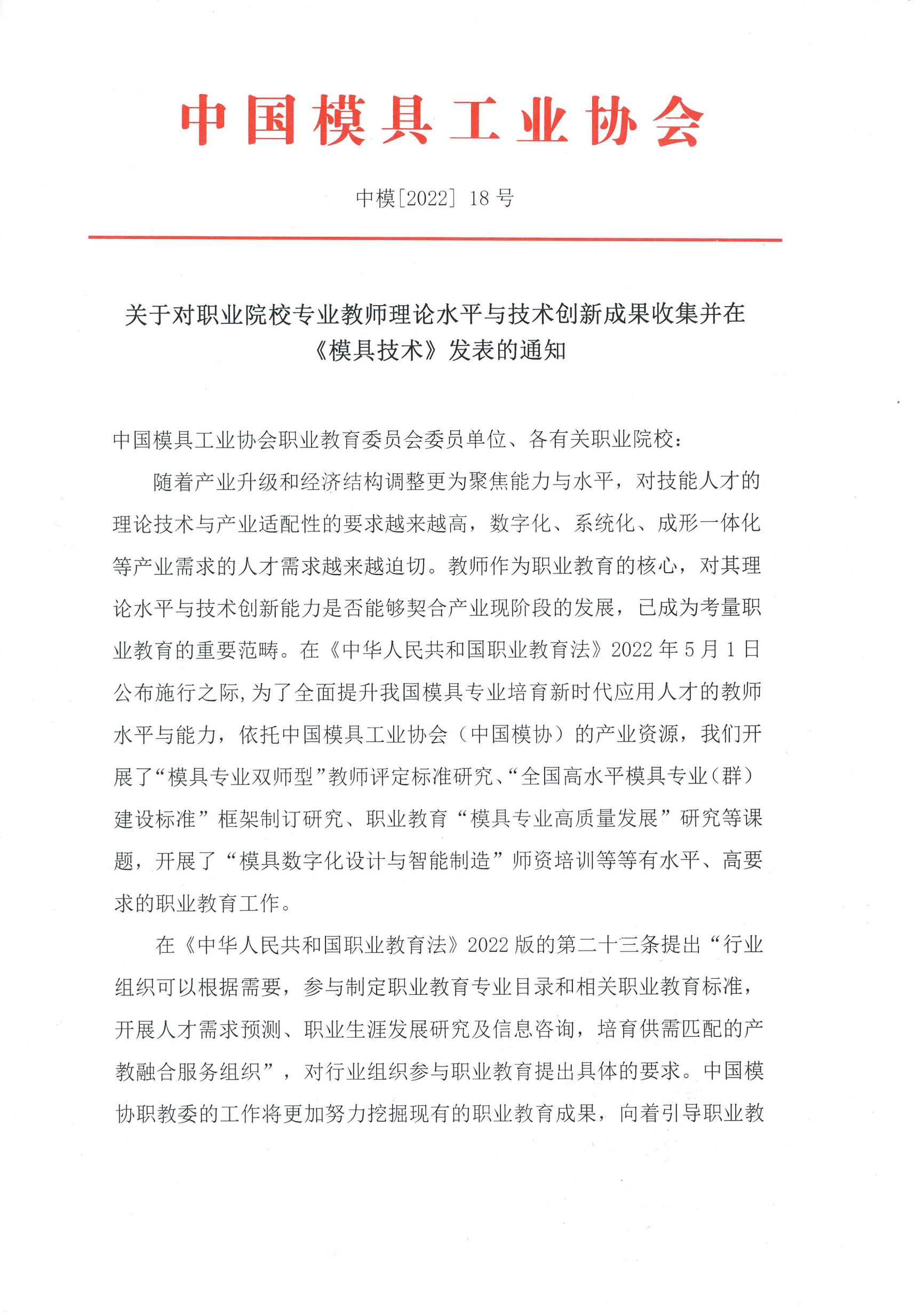 關于對職業院校專業教師理論水平與技術創新成果收集并在《模具技術》發表的通知