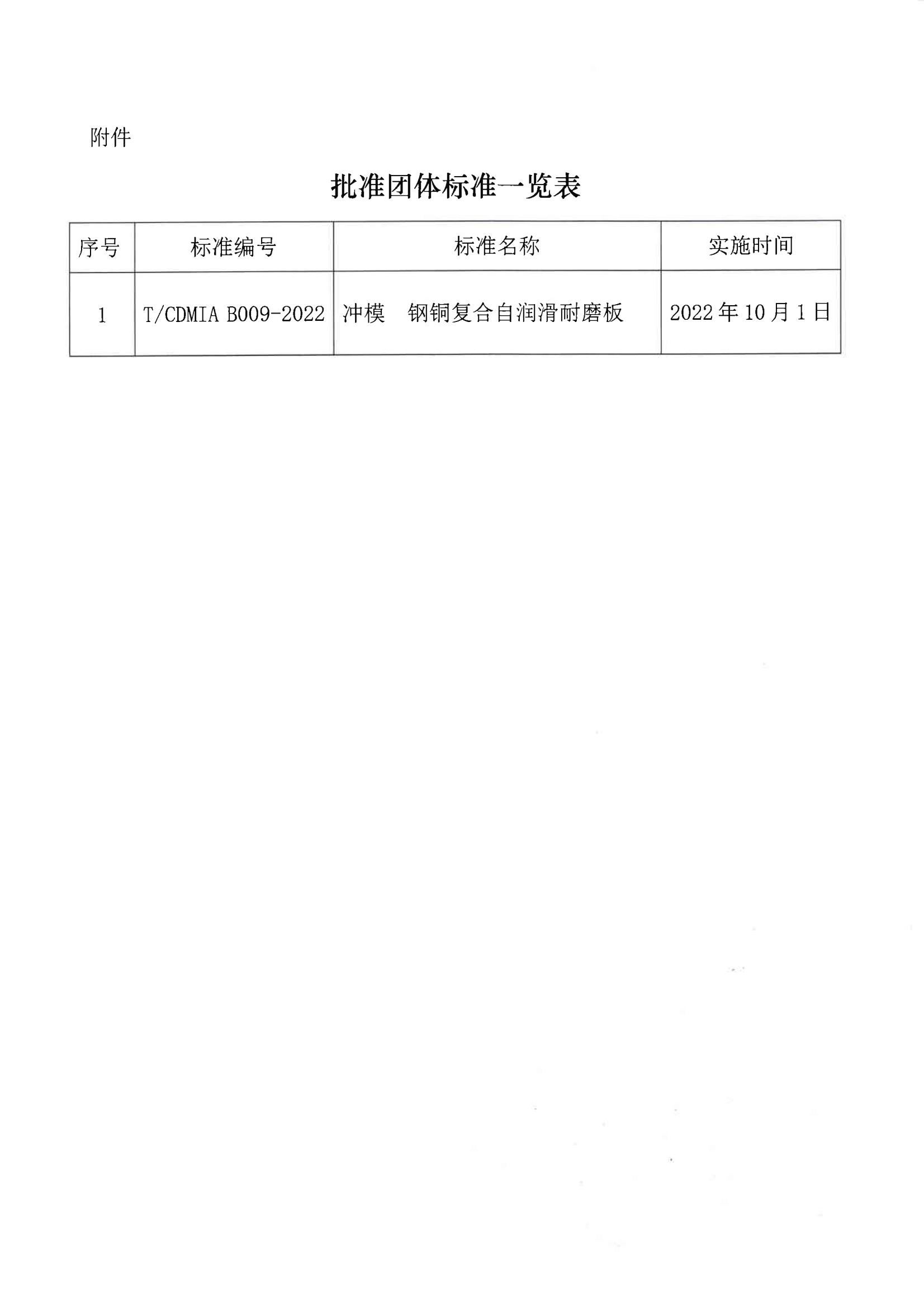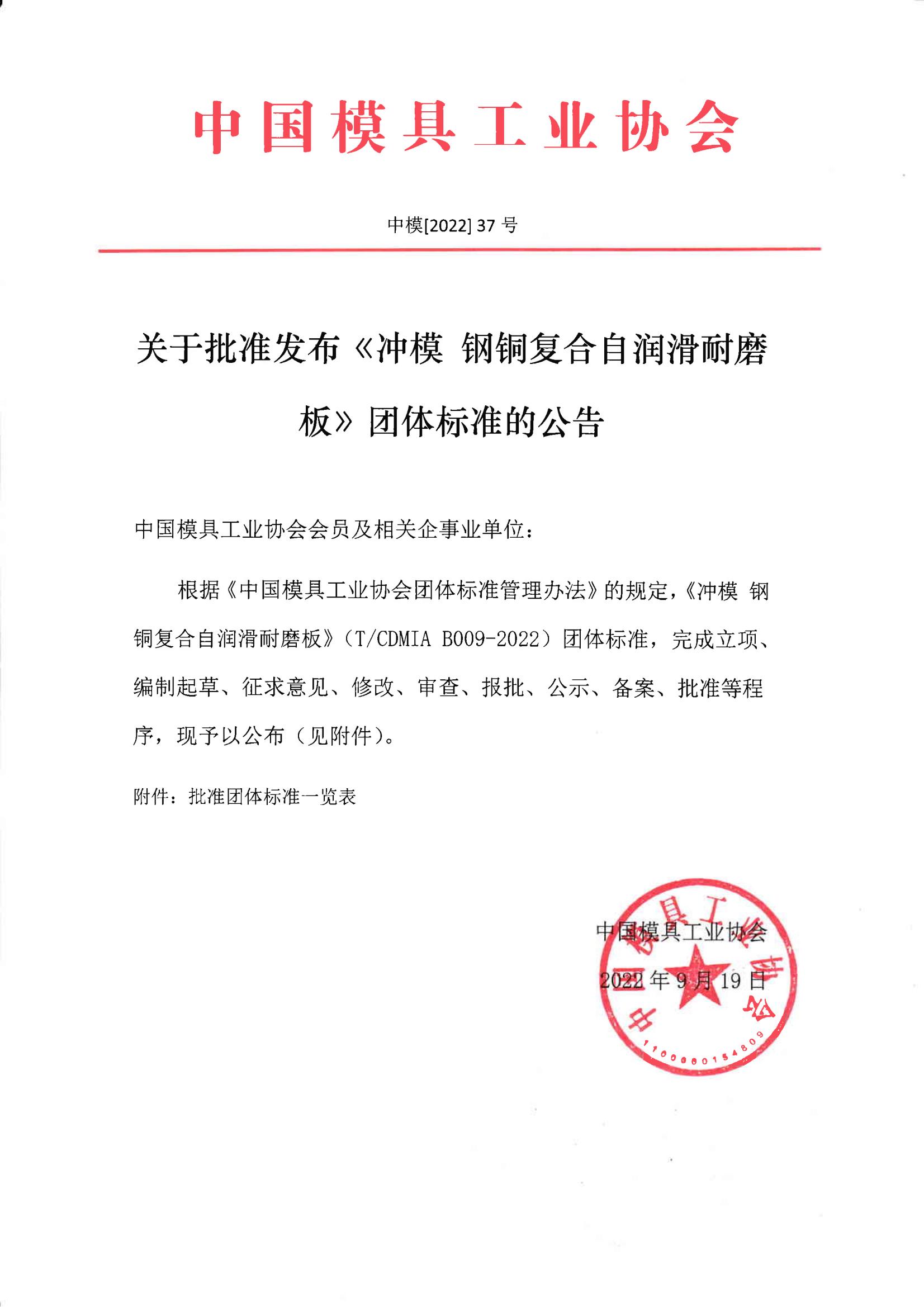 關(guān)于批準(zhǔn)發(fā)布《沖模 鋼銅復(fù)合自潤滑耐磨板》團(tuán)體標(biāo)準(zhǔn)的公告