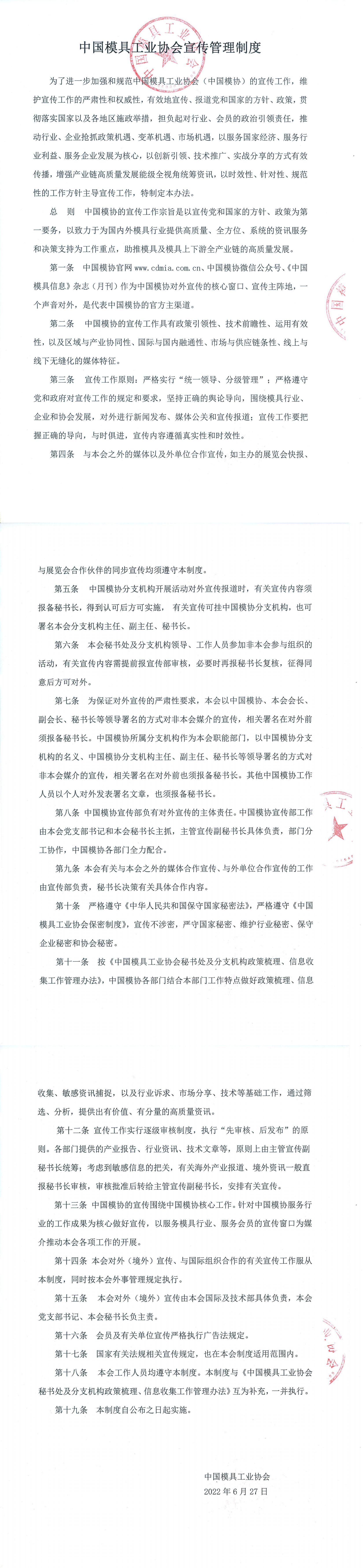 中國模具工業協會宣傳管理制度