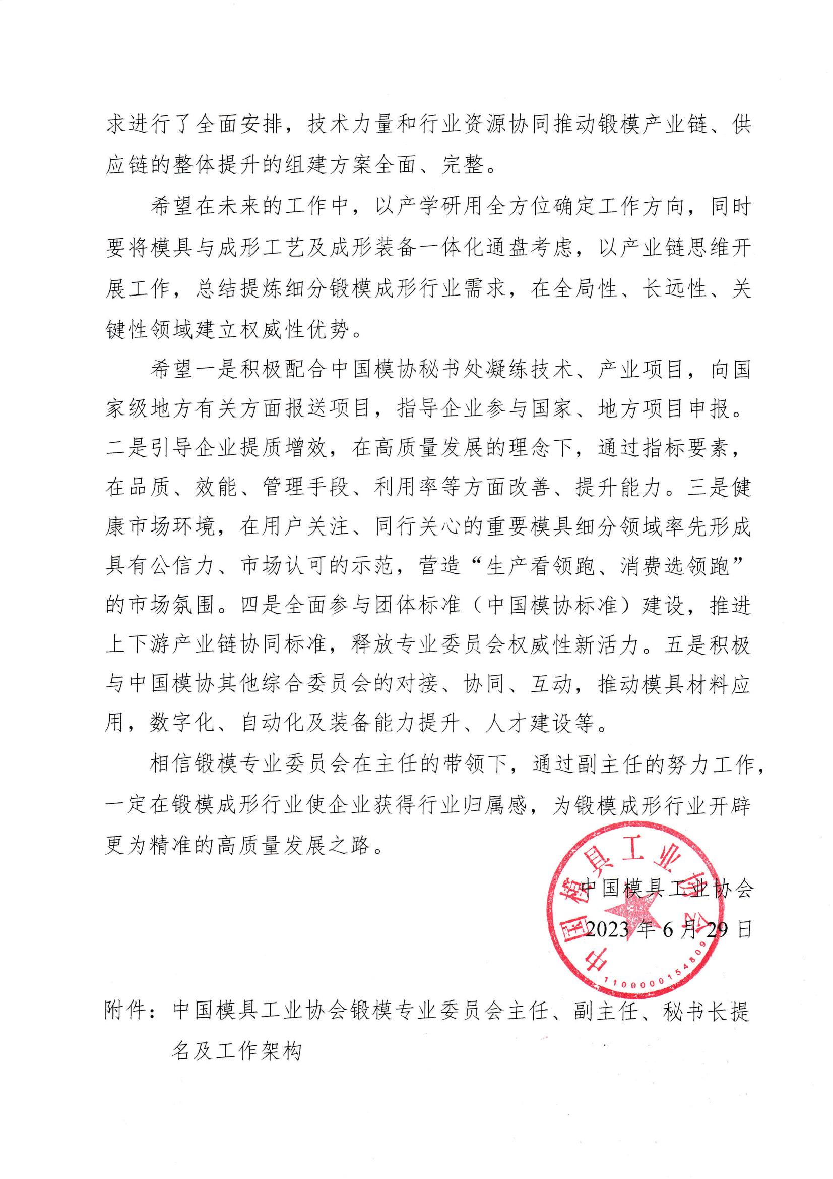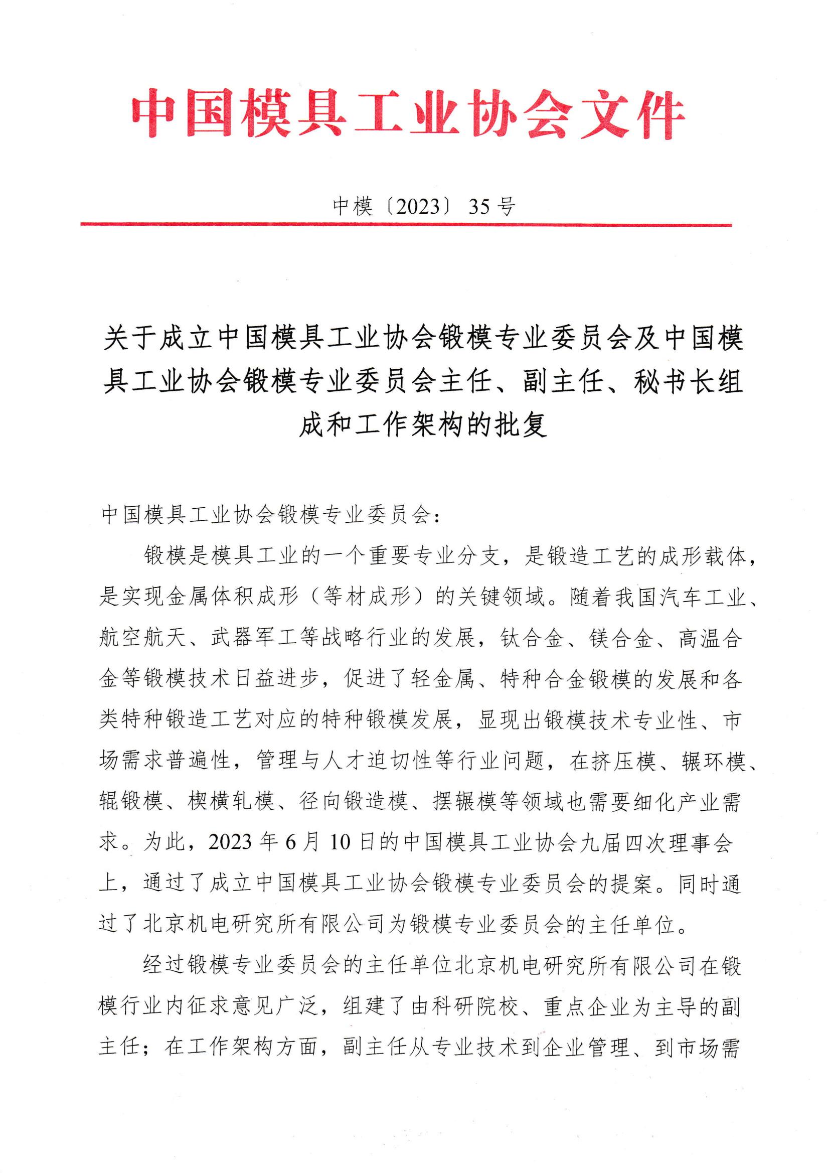 關于成立中國模具工業協會鍛模專業委員會的批復